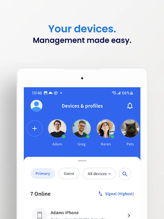 Track your network health - Get an instant view of your home network, connected devices, and bandwidth usage.