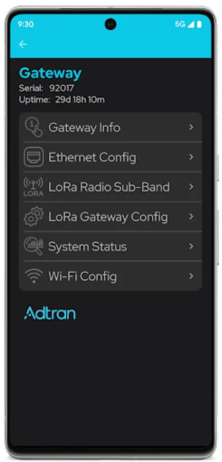 Configuring an ADTRAN IoT LoRaWAN Gateway has never been easier. No need to be tethered via Ethernet or console port. Simply use this app with your Bluetooth enabled device and instantly get access to the gateway and its overall system health: