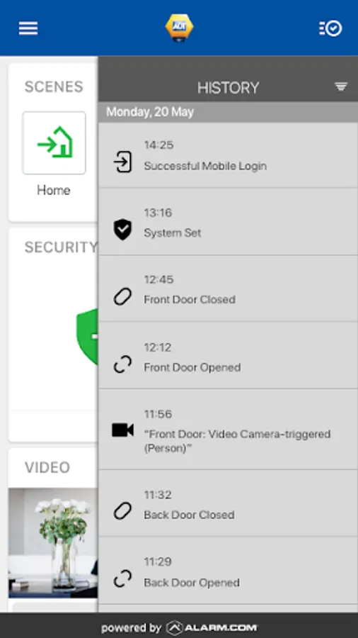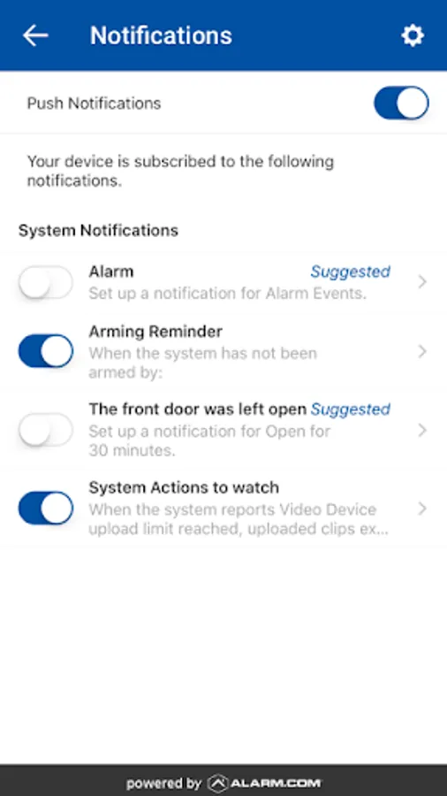 ADT will notify you with a Security or Safety alert, when the status of your device changes. For example, when the alarm is activated or the door/window contact is triggered or the smoke detector goes off so you are immediately alerted.