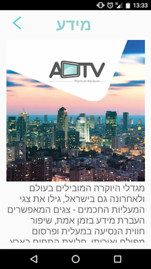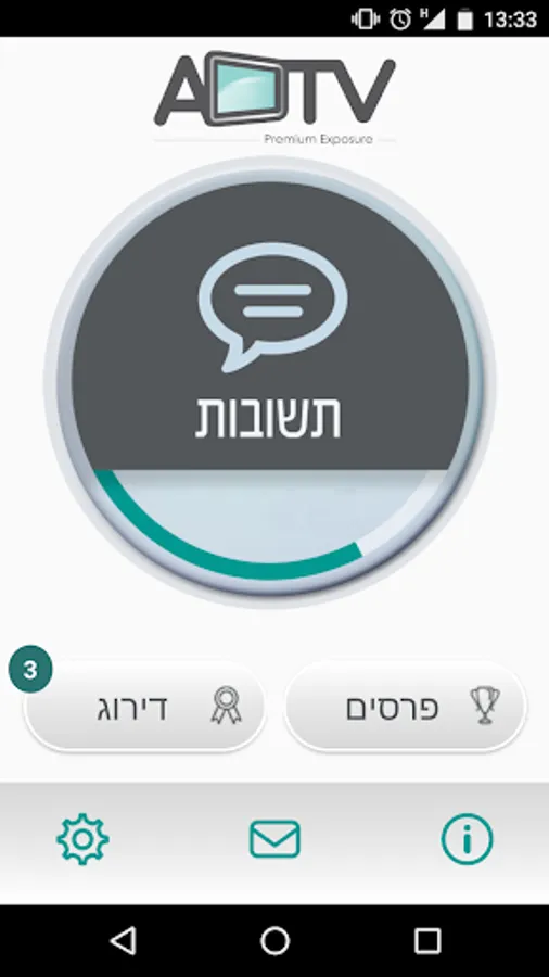 ADTV interactive games App for the first time in Israel. The interactive elevators trivia competition in Israel's leading office and residential towers. If you work in one of the towers participating in the competition all you have to do is download the application and answer the questions that appear in the elevators screens and perhaps you can win prizes. You can see online your ranking compared to the rest of the participants. The game contains hundreds of trivia questions at various levels and on diverse subjects such as history, science, music, culture, art and many more.