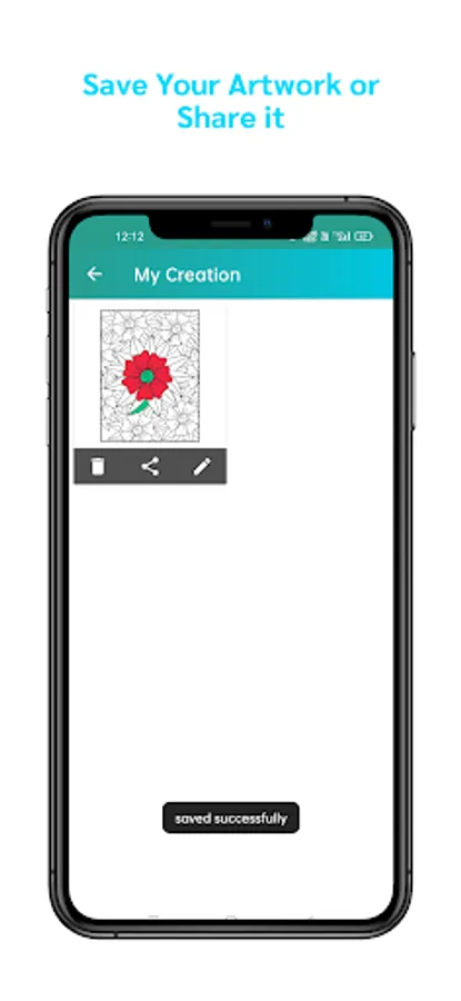 MY CREATION: In the busy schedule of the day if users can't finish the whole painting at once, they can save the painting and they can finish the painting whenever they want from my creation section. Users can also save the paintings for future use.