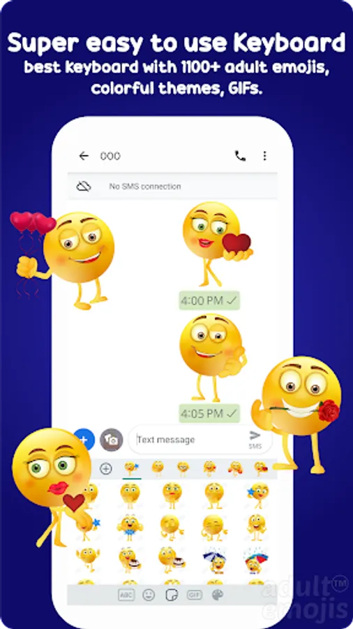 Adult Sticker keyboard by Adult Emojis comes with a great collection of stickers & emoticons. Install emoji sticker keyboard and enjoy sharing awesome stickers.