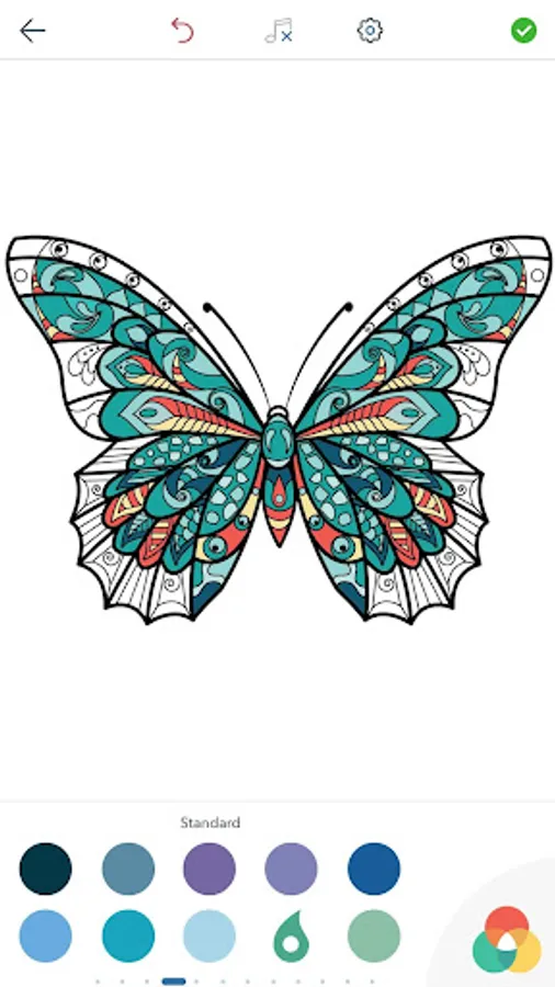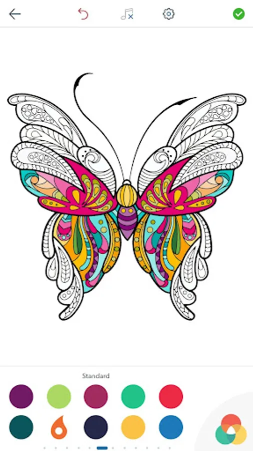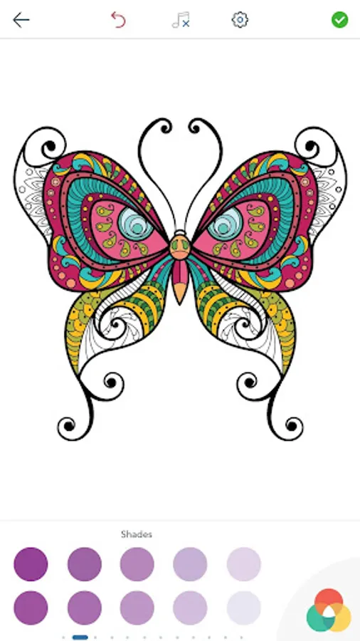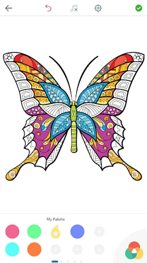 This adult coloring book with beautiful butterfly pictures to color is very easy to use. Multiple color palettes and a personal gallery of your own works, along with calming, relaxing background music, make this anti stress coloring book for adults as user friendly as it can get! Coloring books for grown ups like this one are a path to mindfulness. Engage yourself in hours of peaceful color therapy with gorgeous butterfly coloring pages for adults, including mandala coloring book design. Just select your color and tap to paint!