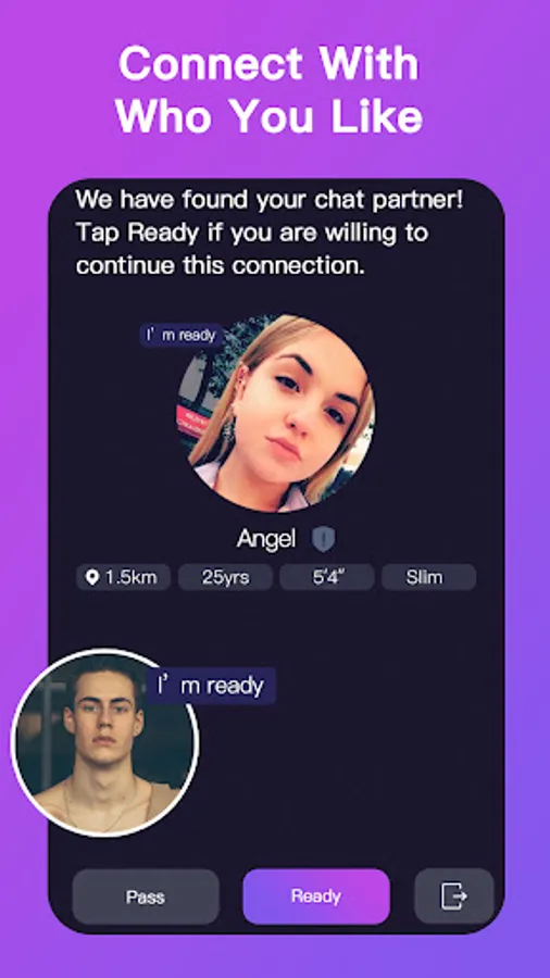 You do not have to wait weeks for an answer from the user you like. We are ready to provide you a unique assistant in the selection of new interesting interlocutors. You will not be needing wingman anymore.That's very easy, you are 30 seconds away from your first matches!