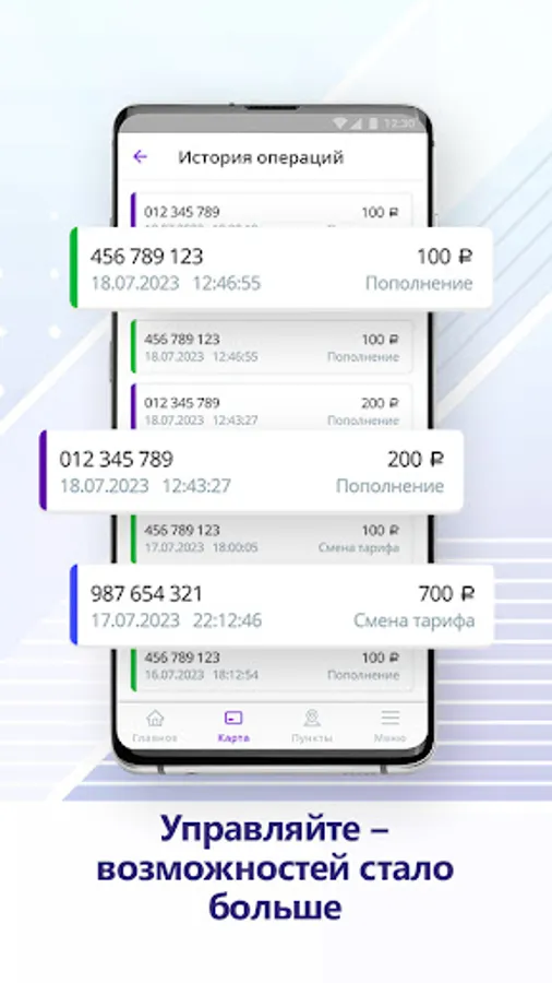 - Direct replenishment of ETC cards with the ability to change the tariff and write a new ticket to the card via the NFC phone.