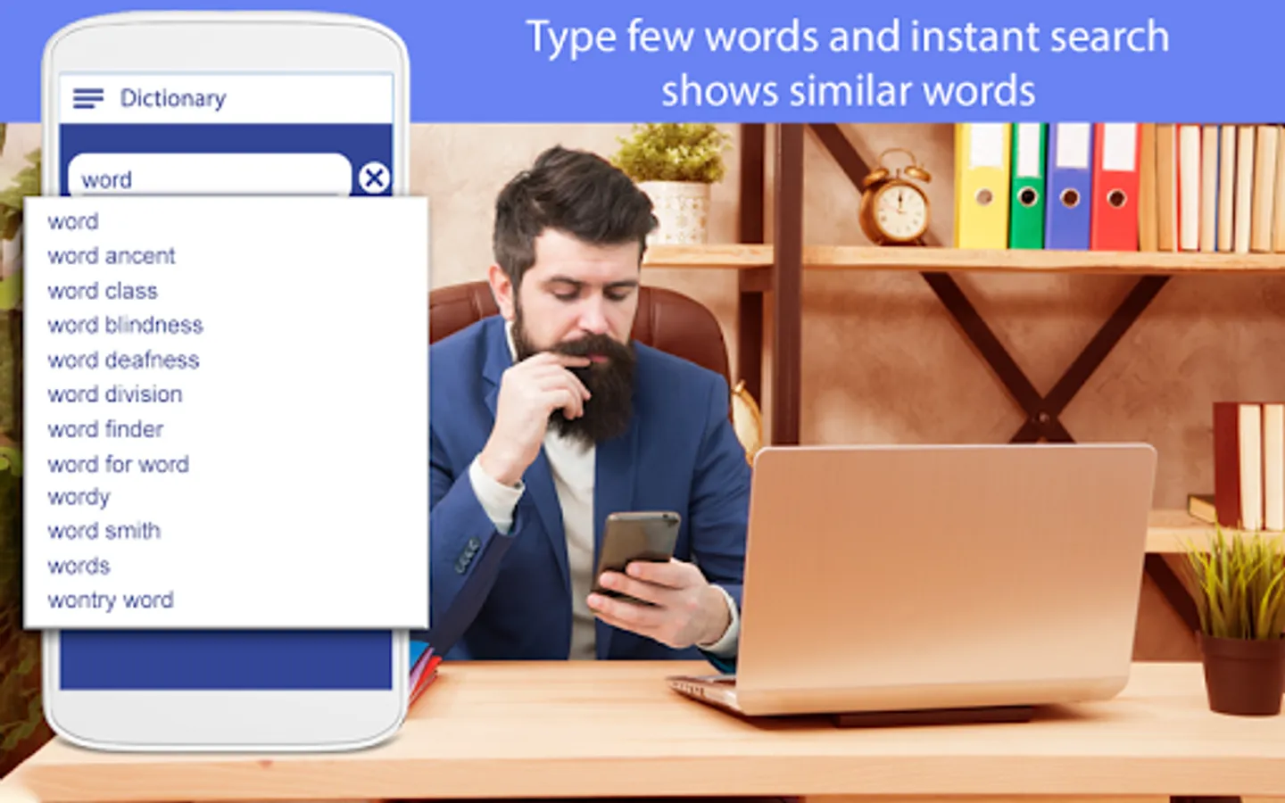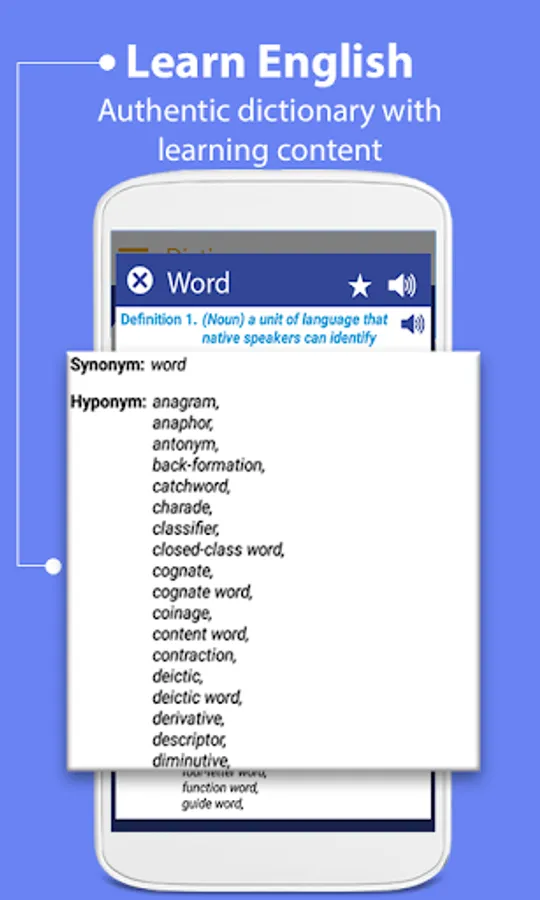 Advance Dictionary-Education Dictionary Box tells about the English grammar nouns, verbs, adjectives and adverbs are organized into synonym and antonyms sets for English Education. If you studying English and you want to know the meaning of word then this dictionary app is English language app & translator app for you. This app has huge offline database of English so no matter you can search and find the meanings of your respective words in English speak and translate app in dictionary app free. English dictionary free includes speak and translate option makes it very easy, fast and accurate your translation in this Advance Dictionary English for English Education free. Dictionary app contains thousands of the words meaning synonyms and antonyms. With a huge database of words and their meaning this Advance English Dictionary is certainly rated among the top Offline English Dictionaries. In this free app speak and translate your voice to produce results in favorite language selected by you with this free dictionary app to speak and translate English dictionary free.