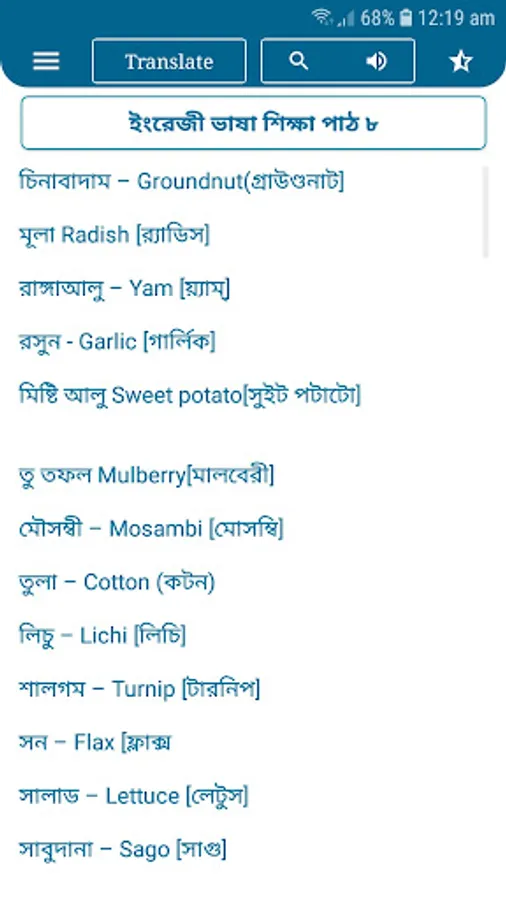 You can find any word by searching and if you can't read the English word then you can hear it you will understand if you listen and also it will be translated in Bengali so you can understand it easily.
