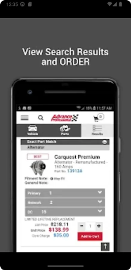Advance Auto Parts® and Carquest® Professional customers can scan directly from a vehicle’s barcode (windshield or door mounted), search for parts, and order directly from the app using their secure Advance Professional account.