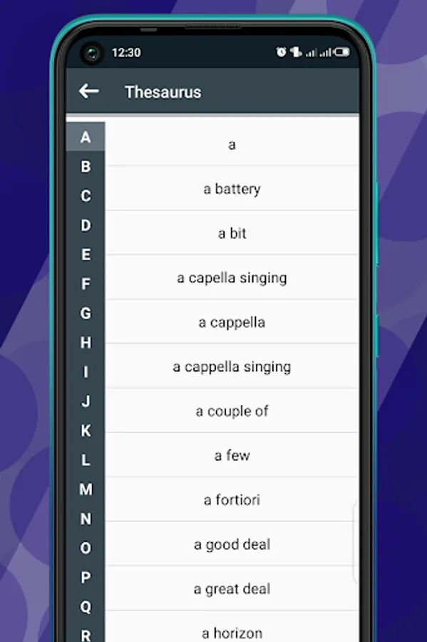 In Theasaurus we arranged all words alphabetically so that users can find words easily. For example, you want to search for a word that starts from Z so you donโt need to scroll down the whole list that contains a lot of words, you will simply jump into Z, and there you can find any word that starts from Z in Advanced English Dictionary.