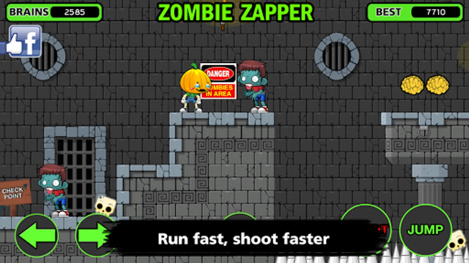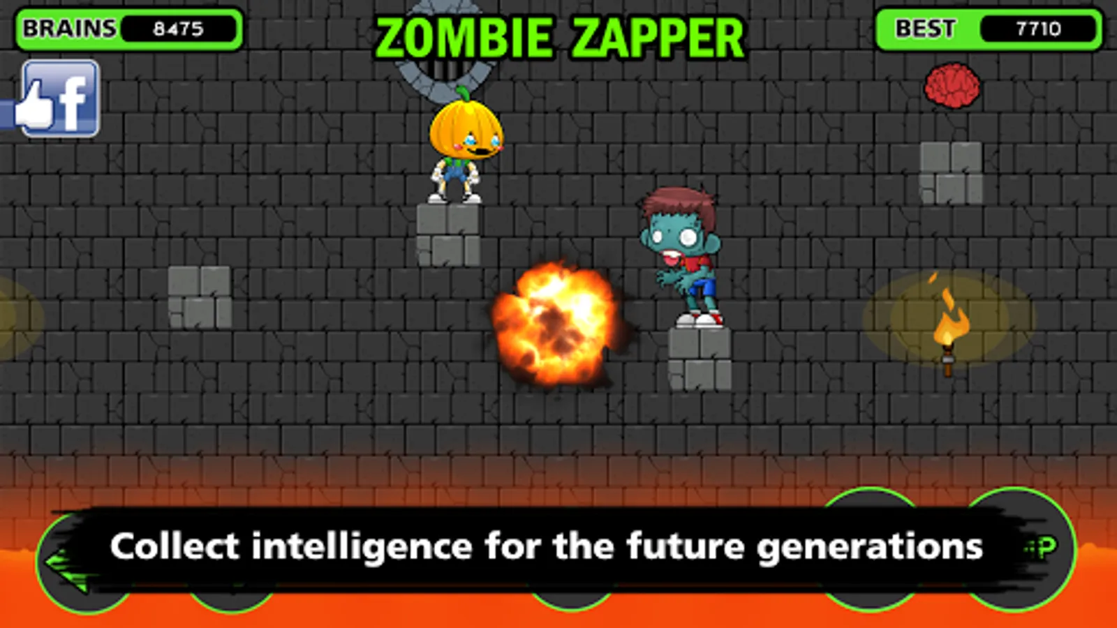 The perfect game for hunting and destroying zombies on a dark fright night, finding your way through the cavernous tombs avoiding dripping acid and hot flaming lava. collect the brains of the converted, making sure mankind can and will survive for future generations see how many zombies you can zap.