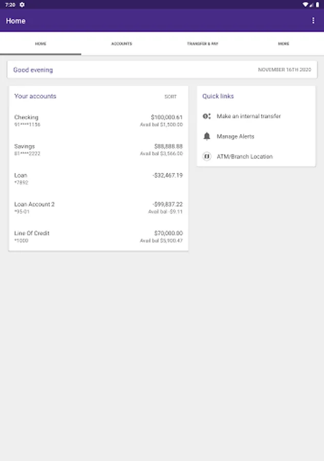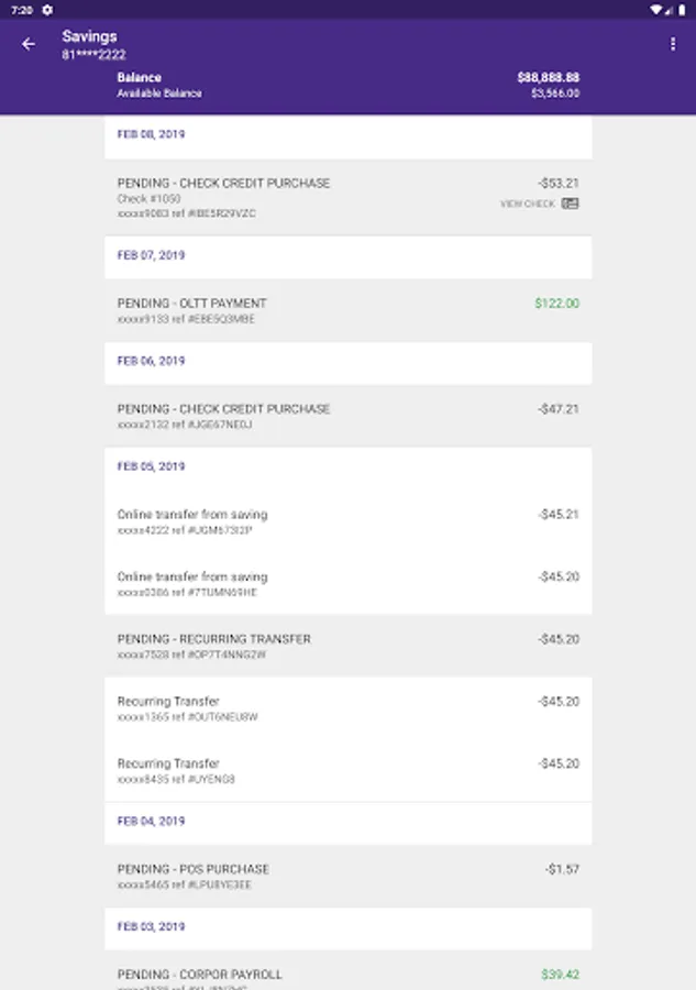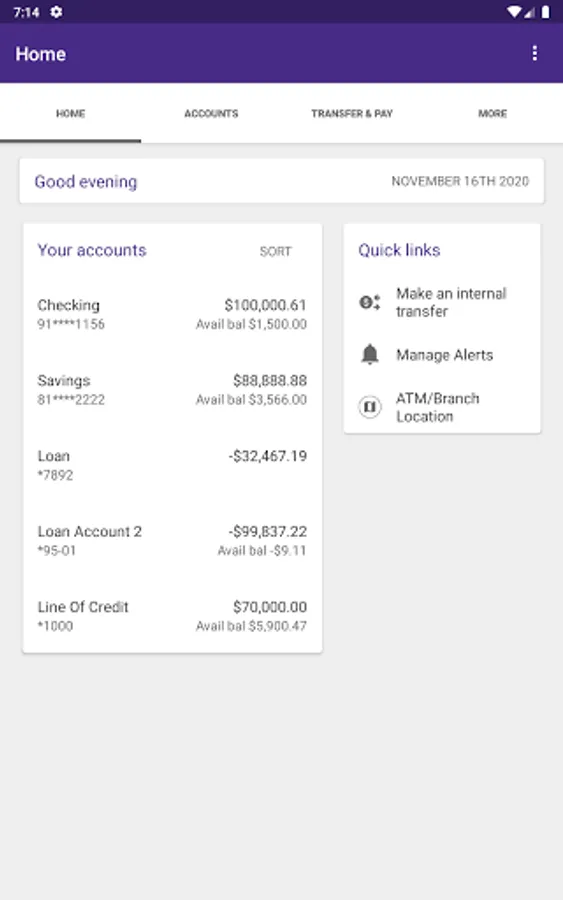With Android phone in hand, you can take care of finances 24/7. Want to check a balance? Simple. Need to transfer funds right away? No problem. Forgot what you spent yesterday? Look at your recent activity. Or search transactions by date or amount. Looking for a branch or ATM while traveling? Search for branch locations near you by address or Zip Code.