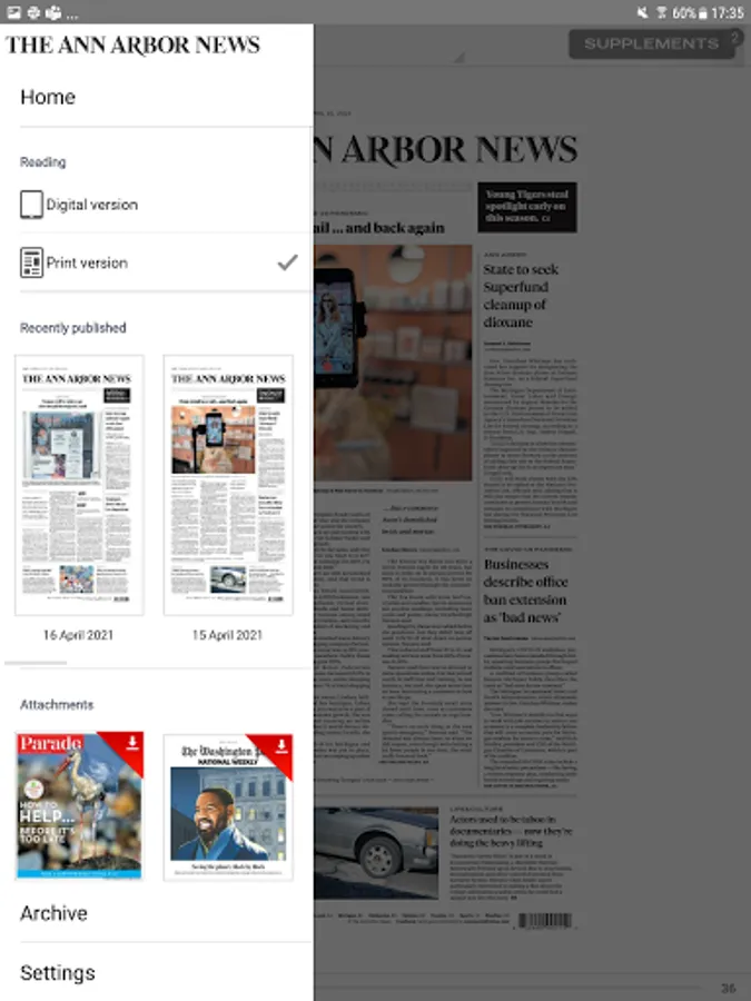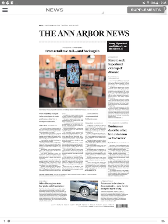 Welcome to The Ann Arbor News new and improved eNewspaper app! Enjoy 24/7 access to the eNewspaper. Stay in touch with award-winning local news coverage, daily features, sports, entertainment, special sections and more, right at your fingertips! Your new eNewspaper comes with an enhanced reading experience. Set your reading preference to either the print, replica version or the digital version of the newspaper. Additional features include a 30-day archive, bonus magazines and supplements, image galleries, interactive puzzles and games, ability to share articles with friends and family, and more!.