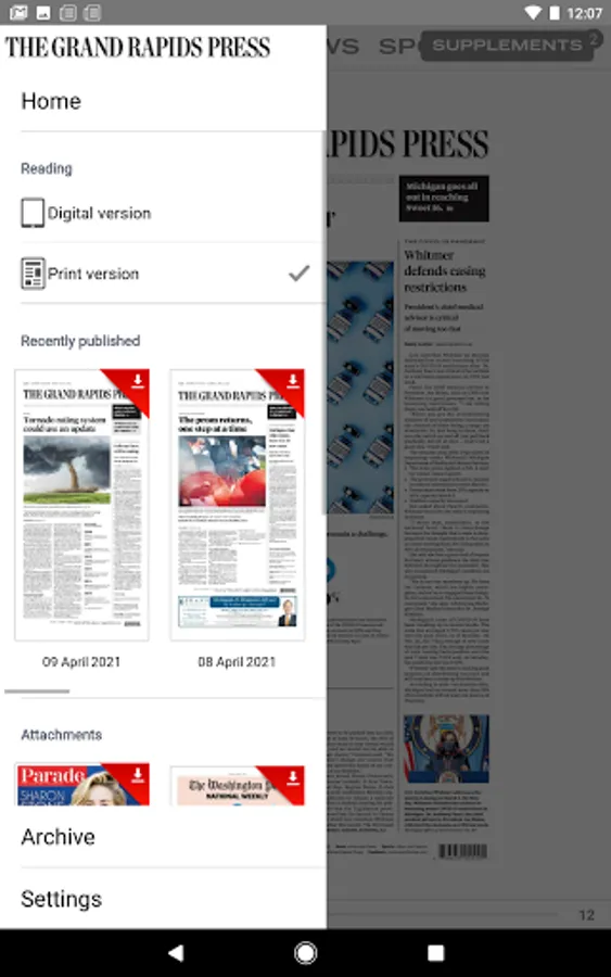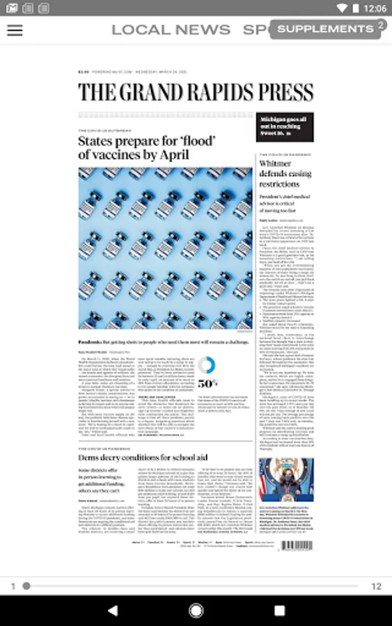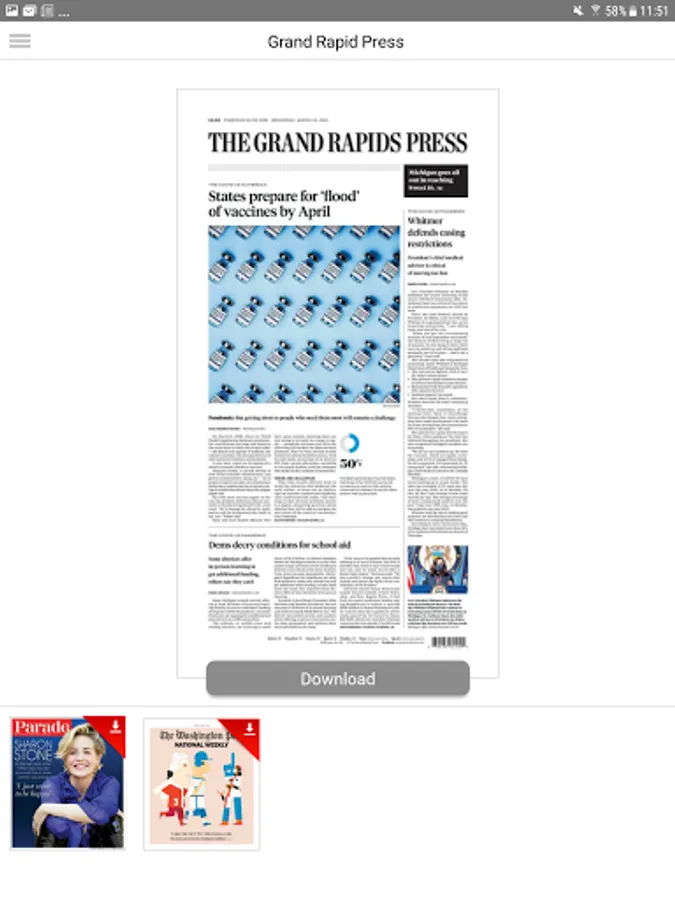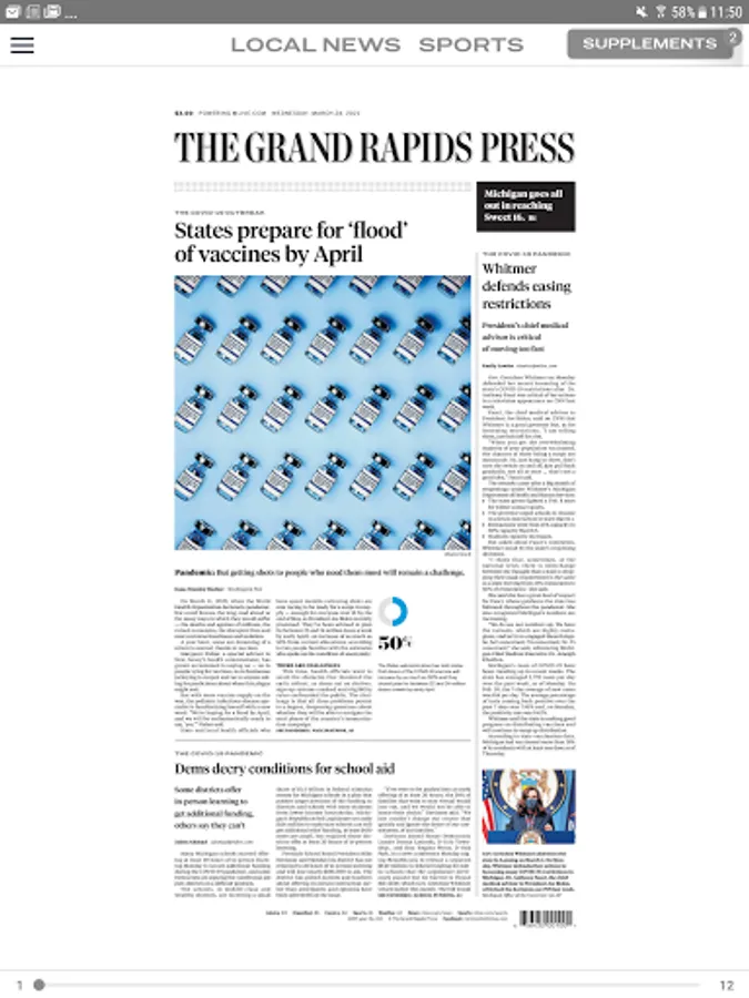 Welcome to The Grand Rapids Press new and improved eNewspaper app! Enjoy 24/7 access to the eNewspaper. Stay in touch with award-winning local news coverage, daily features, sports, entertainment, special sections and more, right at your fingertips! Your new eNewspaper comes with an enhanced reading experience. Set your reading preference to either the print, replica version or the digital version of the newspaper. Additional features include a 30-day archive, bonus magazines and supplements, image galleries, interactive puzzles and games, ability to share articles with friends and family, and more!.