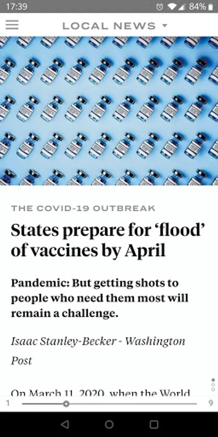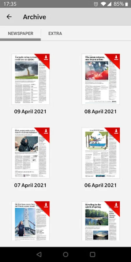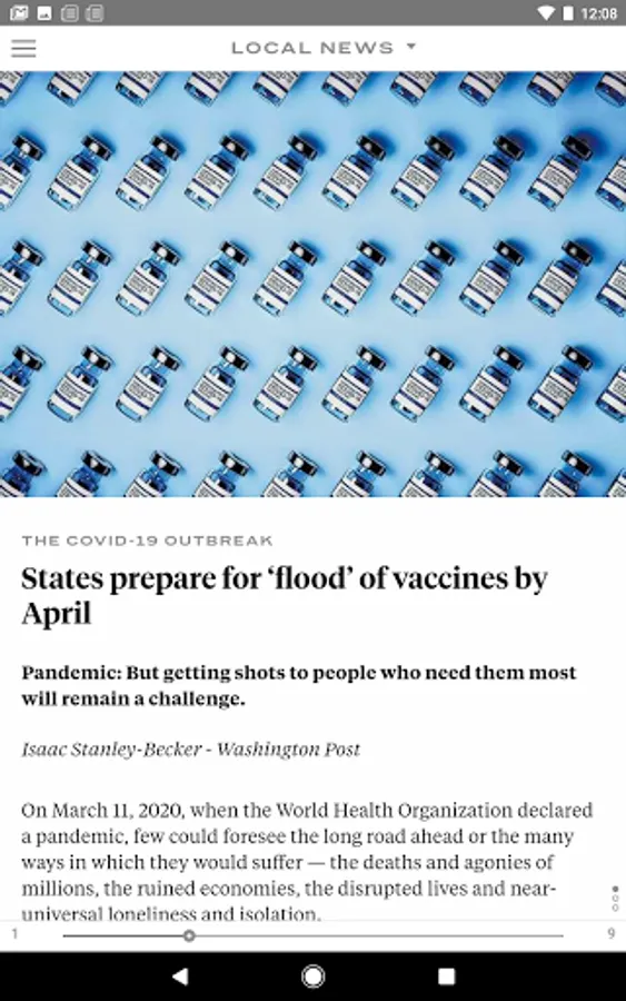 Navigational choices available at your fingertips – read by section, by page, by article. Reading default preferences available in settings.