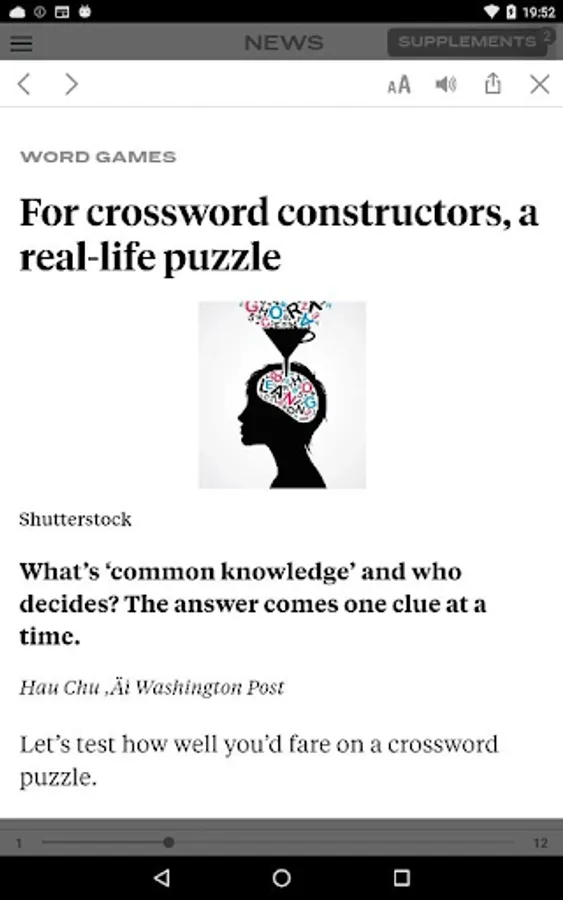 Navigational choices available at your fingertips – read by section, by page, by article. Reading default preferences available in settings.
