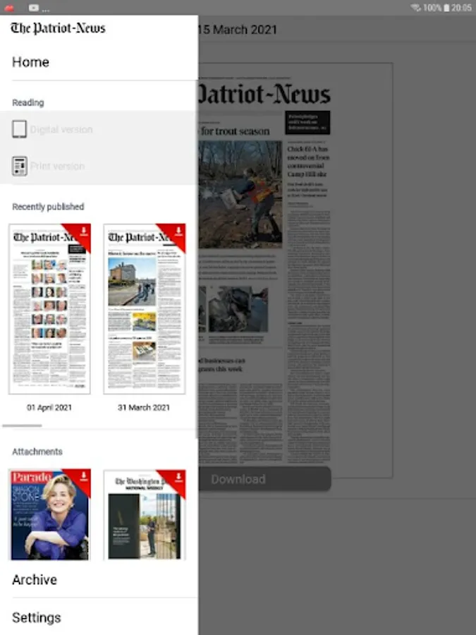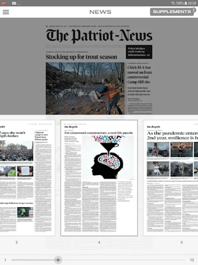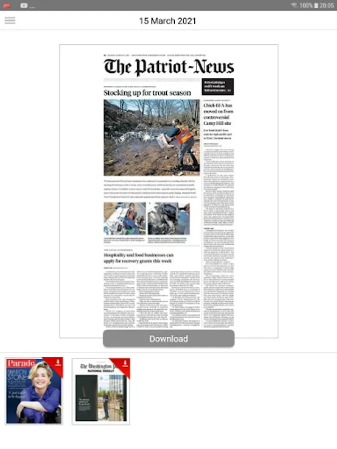 Welcome to the new and improved Patriot-News eNewspaper app! Enjoy 24/7 access to Pennsylvania’s largest newspaper. Stay in touch with award-winning local news coverage, daily features, sports, entertainment, special sections and more, right at your fingertips! Your new eNewspaper comes with an enhanced reading experience. Set your reading preference to either the print, replica version or the digital version of the newspaper. Additional features include a 30-day archive, bonus magazines and supplements, image galleries, interactive puzzles and games, ability to share articles with friends and family, and more!.