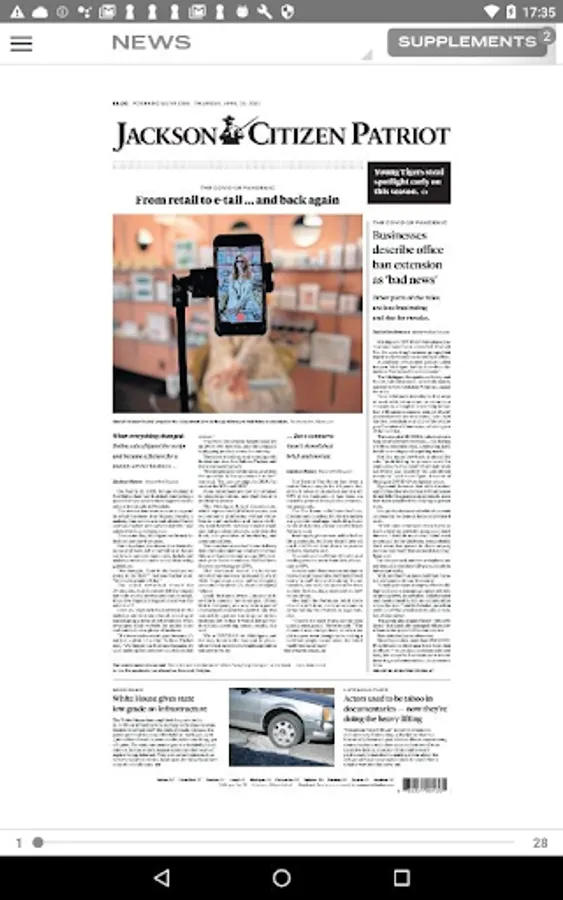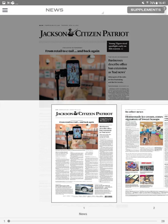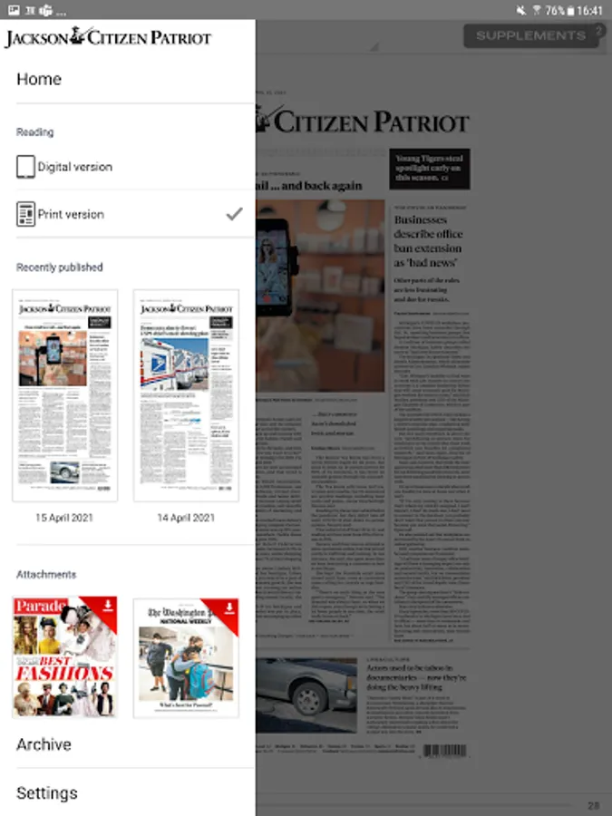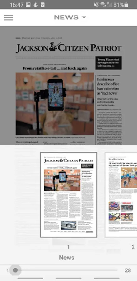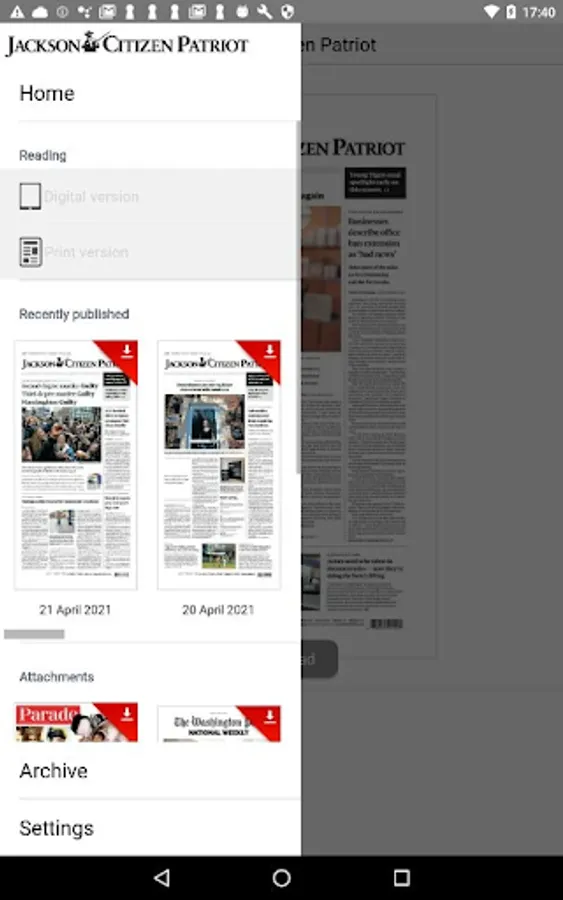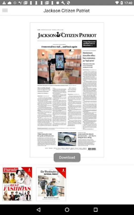 Welcome to the new and improved Jackson Citizen Patriot eNewspaper app! Enjoy 24/7 access to the eNewspaper. Stay in touch with award-winning local news coverage, daily features, sports, entertainment, special sections and more, right at your fingertips! Your new eNewspaper comes with an enhanced reading experience. Set your reading preference to either the print, replica version or the digital version of the newspaper. Additional features include a 30-day archive, bonus magazines and supplements, image galleries, interactive puzzles and games, ability to share articles with friends and family, and more!.