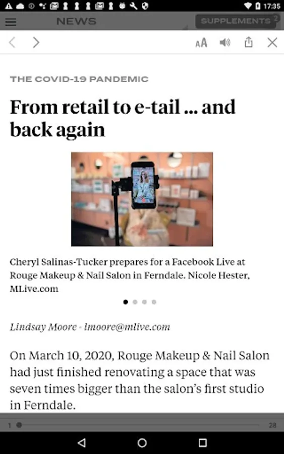 Navigational choices available at your fingertips – read by section, by page, by article. Reading default preferences available in settings.