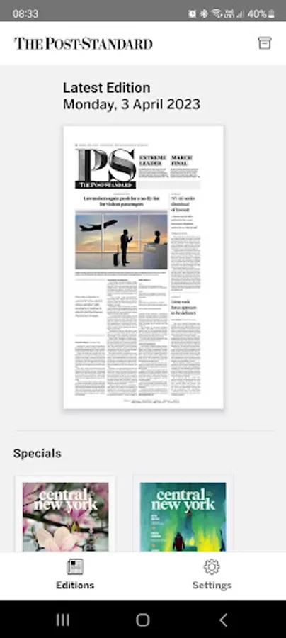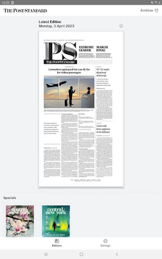 Welcome to the new and improved ePost-Standard app! Enjoy 24/7 access to award-winning CNY local news coverage, daily features, sports, entertainment, special sections and more, right at your fingertips! Navigate The Post-Standard, one of America's best-read newspapers, complete with an enhanced reading experience. Set your reading preference to either the print, replica version or the digital version of the newspaper. Additional features include a 30-day archive, bonus magazines and supplements, image galleries, interactive puzzles and games, ability to share articles with friends and family, and more!