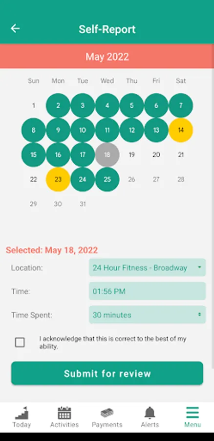 · Self-report missed gym visits.
