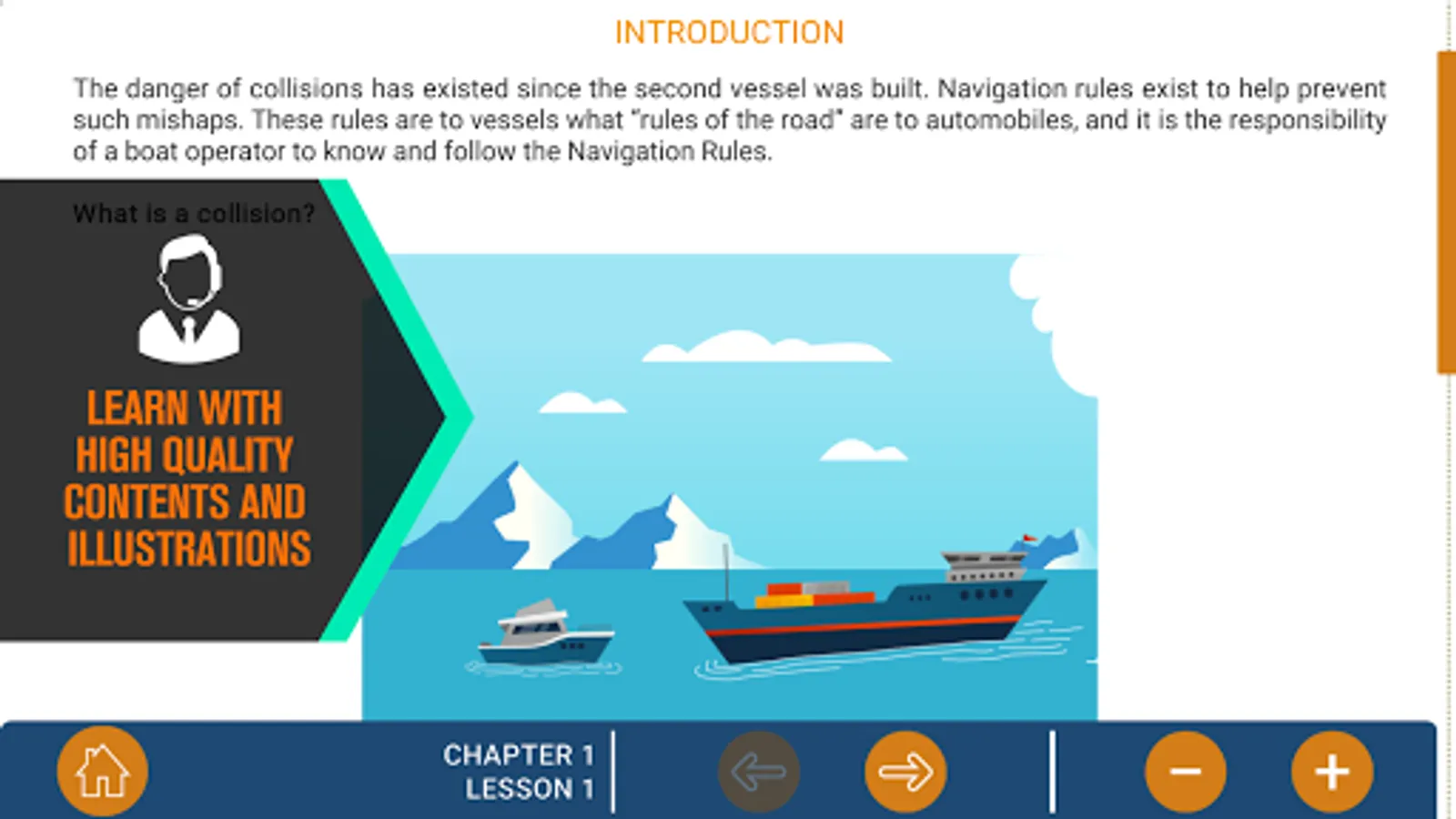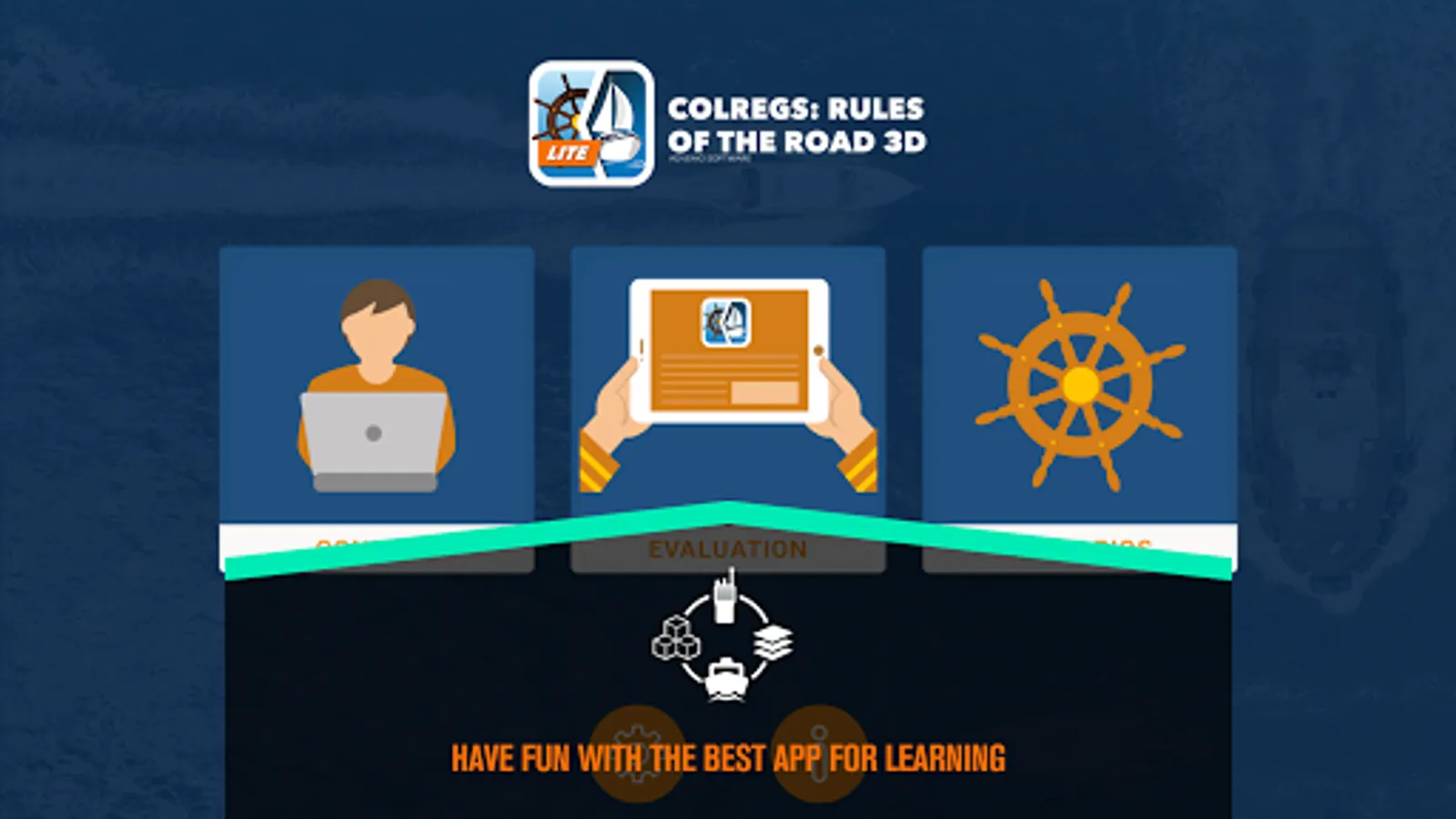 COLREGS: Rules of the Road 3D is the most complete application on the market for learning and practicing about the rules of the road while sailing. It is divided into three sections (Learning, Test and Simulation) so you can have an immersive experience aboard a ship, read, train and test all your knowledge in a didactic and fun way.