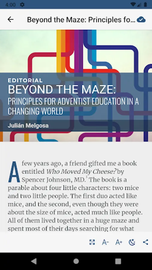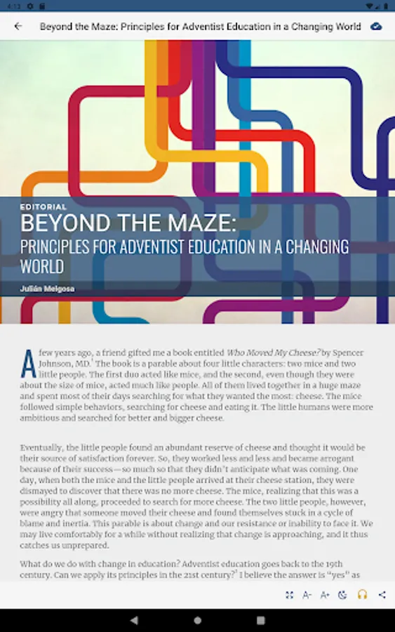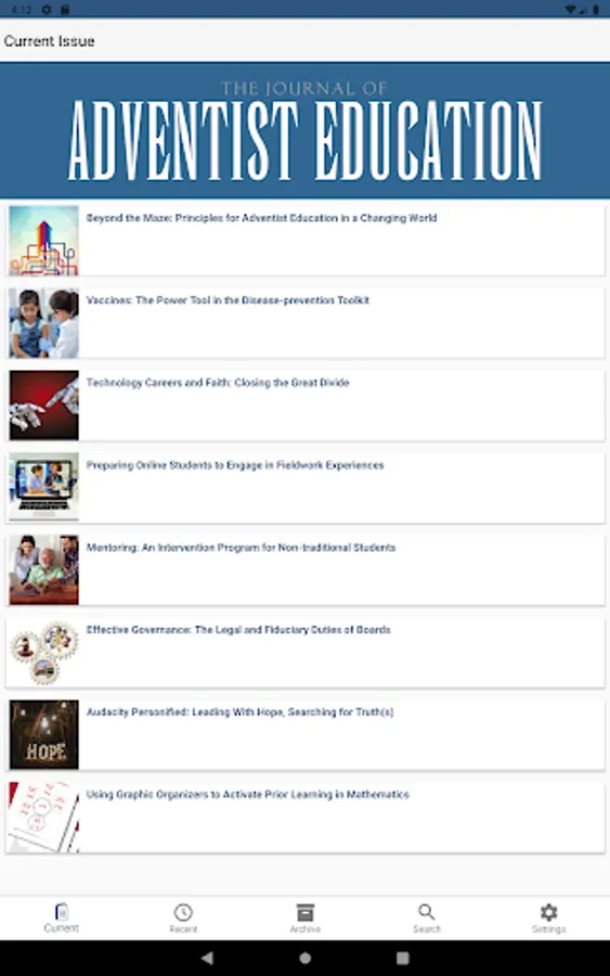 A professional journal for Seventh-day Adventist teachers from kindergarten through university level, as well as educational administrators at all levels. Published quarterly, each issue features informational and practical articles on a variety of topics relating to Christian education and devotional items. Occasional theme issues also deal with practical applications of Christian education and the integration of faith and learning in the classroom.