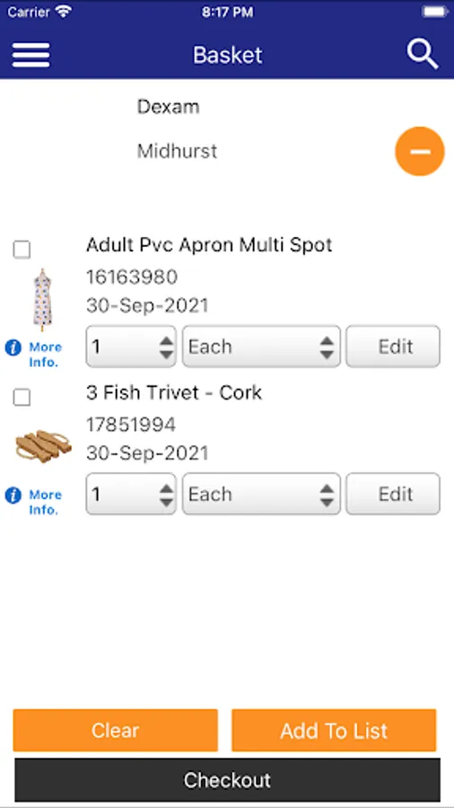 4. Select your items, add them to your basket, and click on ‘Checkout’ to place your orders.