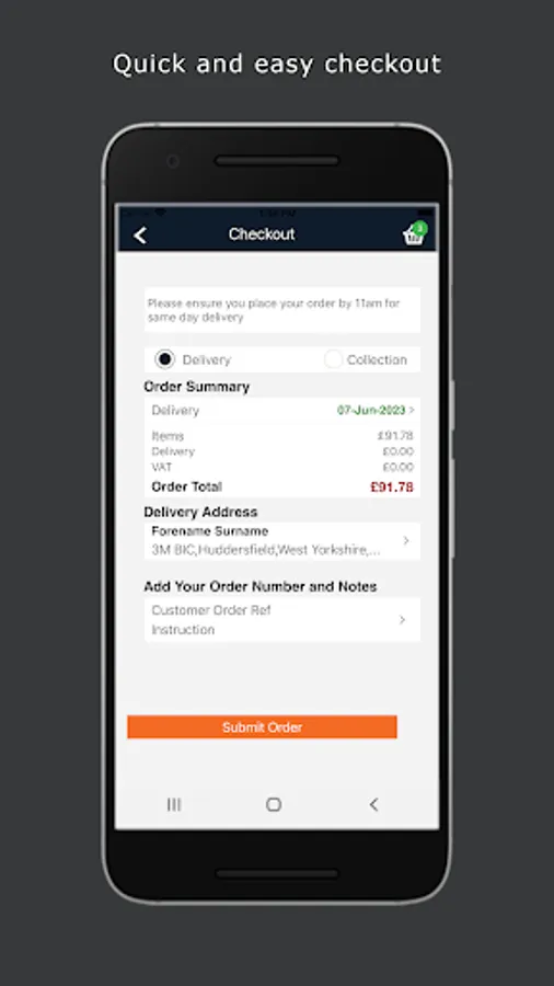 4. Place your order, then click and submit (partial orders can also be saved in the cloud to finish at a later date, on any compatible device)