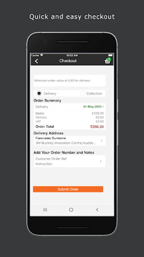 - Place your order, then click and submit (partial orders can also be saved in the cloud to finish at a later date, on any compatible device)
