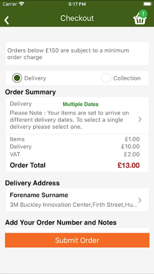 4. Place your order, then click and submit (partial orders can also be saved in the cloud to finish at a later date, on any compatible device)