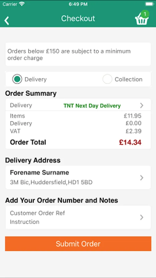 4. Place your order, then click and submit (partial orders can also be saved in the cloud to finish at a later date, on any compatible device)