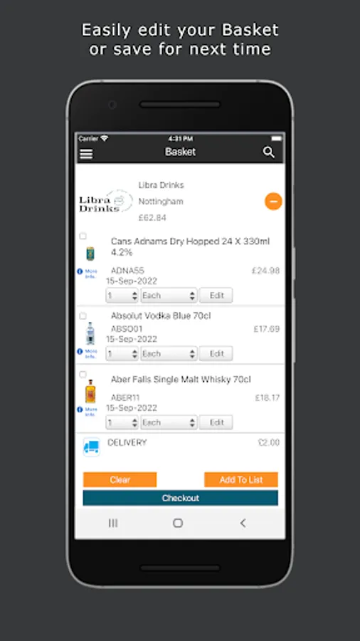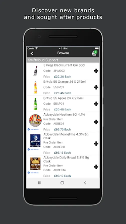 Once registered, you can browse our product listings or search for products by product code, by description or by scanning a barcode with your device’s camera. Quickly and easily check stock availability, place orders and receive special promotions and discounts, all from your smartphone or tablet.