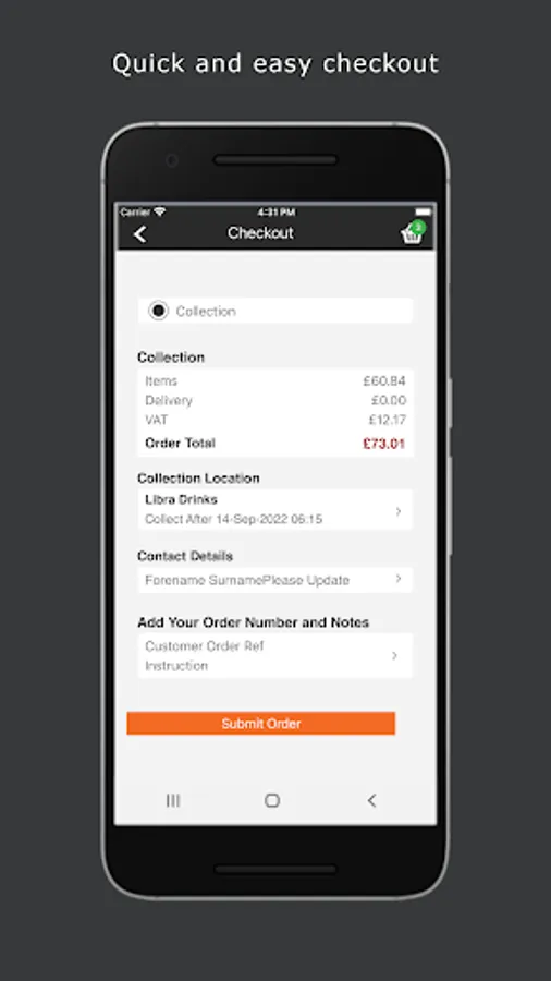 4. Place your order, then click and submit (partial orders can also be saved in the cloud to finish at a later date, on any compatible device)