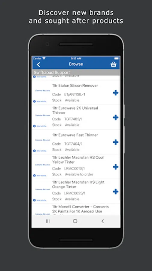 Once registered, you can browse our product listings or search for products by product code, by description or by scanning a barcode with your device’s camera. Quickly and easily browse our stocklist availability, place orders and receive special promotions and discounts, all from your smartphone or tablet.