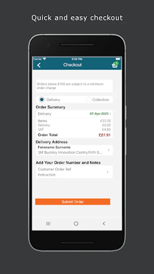 Place your order, then click and submit (partial orders can also be saved in the cloud to finish at a later date, on any compatible device)