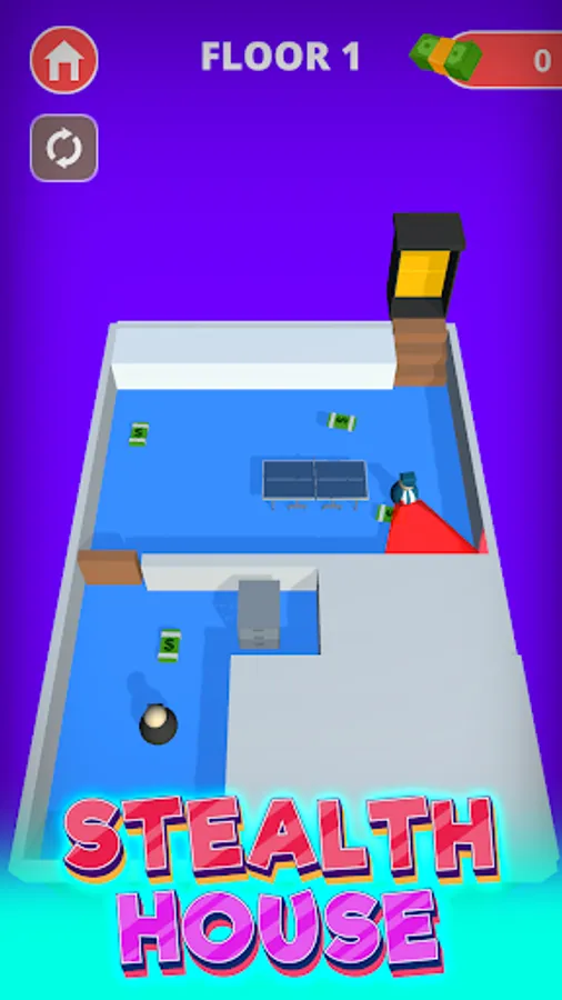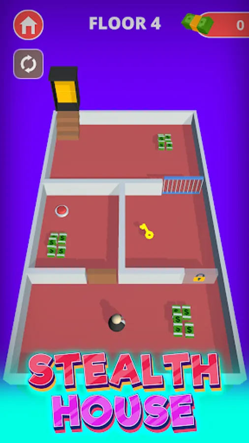 Stealth house sneaks on the floors and steals all the cash and unlocks new skins.