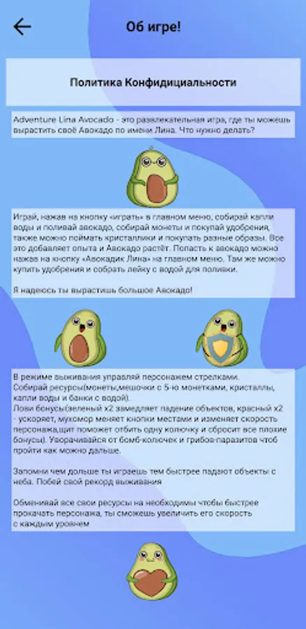 Play as Avocadik, dodge thorns and collect bonuses, exchange them for resources and upgrade Avocadic!