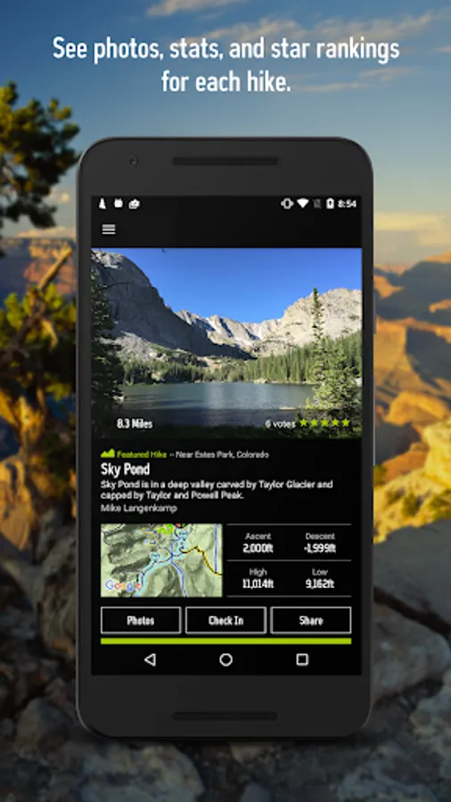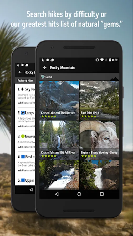 • Search for hikes using the map or a park's “best of” list curated through star rankings from the community.