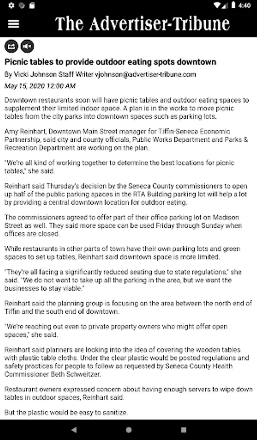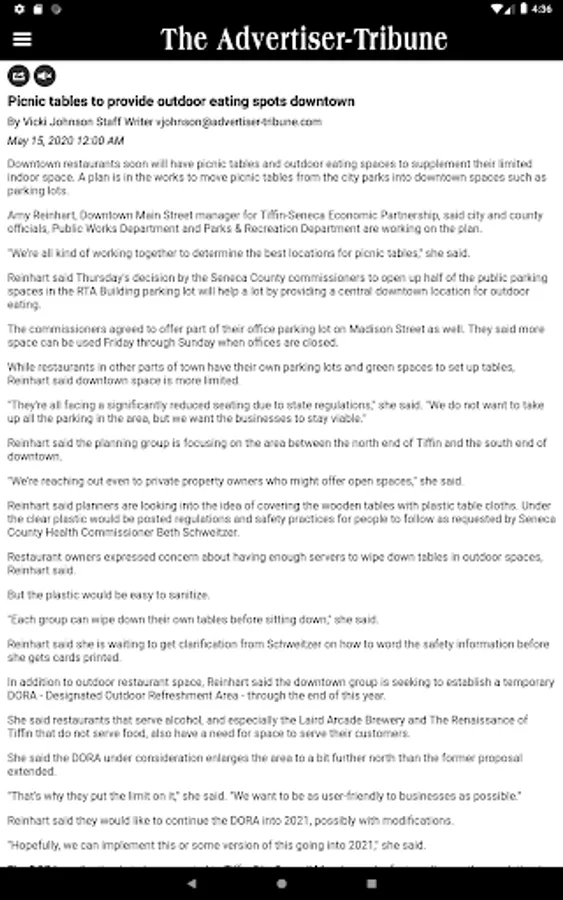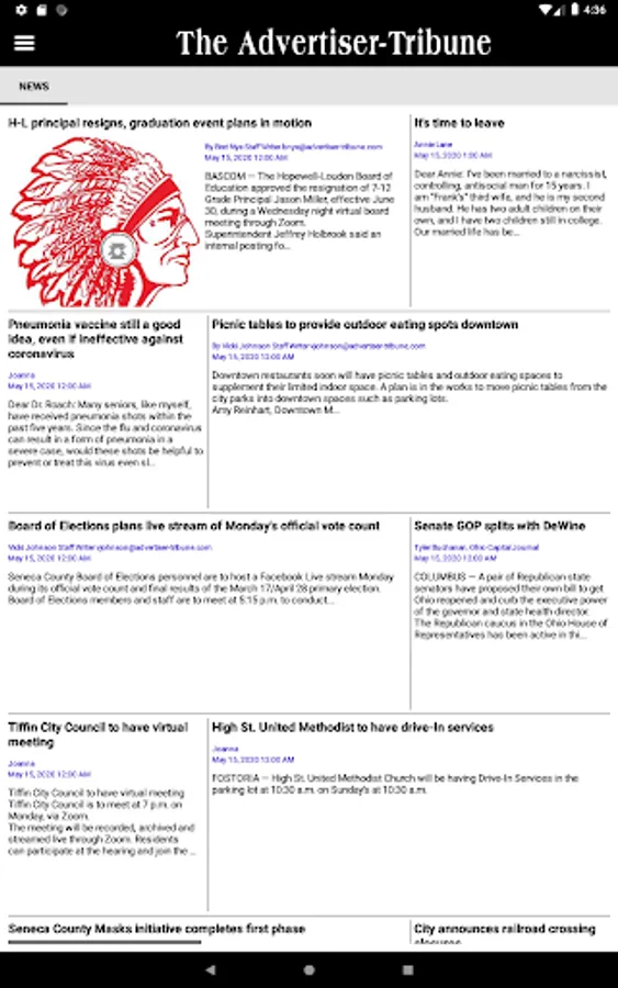 Stay on top of news from Tiffin and surrounding areas by receiving our combined news and e-edition app on your device. The Advertiser-Tribune is the best source for local and national news, sports, weather, and features from the Seneca County area. Download the app to view the printed pages of the newspaper or read headlines and stories along with related photos in a built-in story viewer.