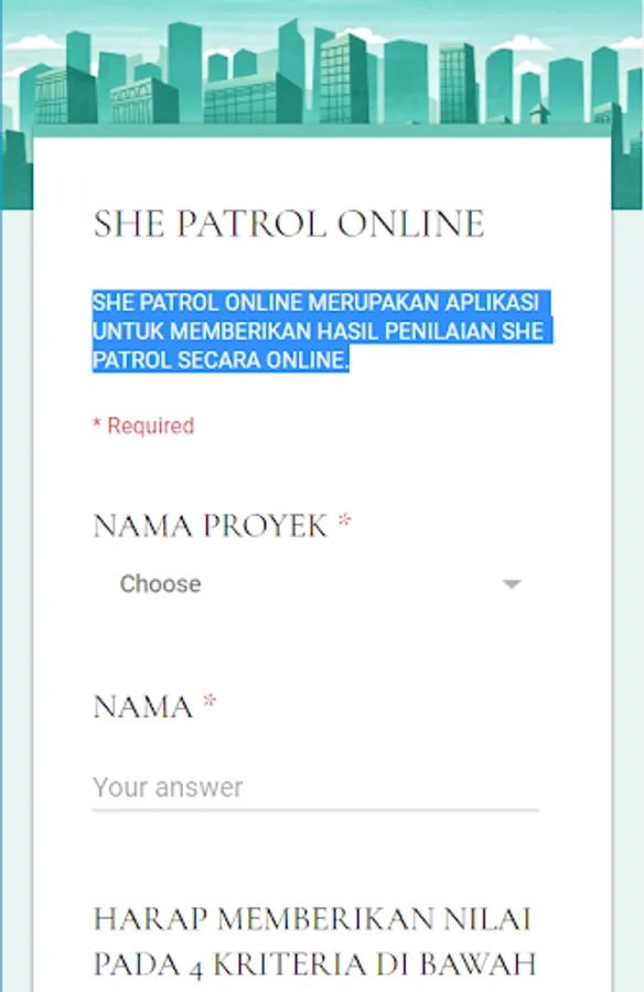 SHE PATROL ONLINE MERUPAKAN APLIKASI UNTUK MEMBERIKAN HASIL PENILAIAN SHE PATROL SECARA ONLINE.