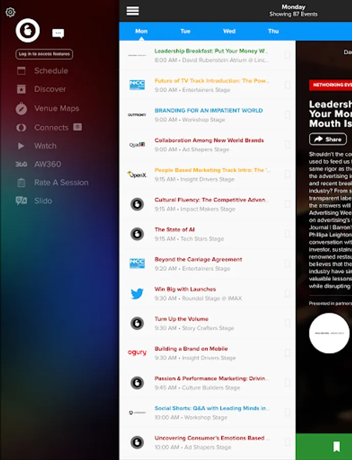 With more than 350 distinct events, The Week is a hybrid of thought leadership Seminars featuring the industry's best and brightest and engaging special events which galvanize targeted constituencies. Spawned from creative roots in 2004, Advertising Week now draws from the client, media and broader cultural communities with a laser focus on key business drivers which shape and influence the global industry.