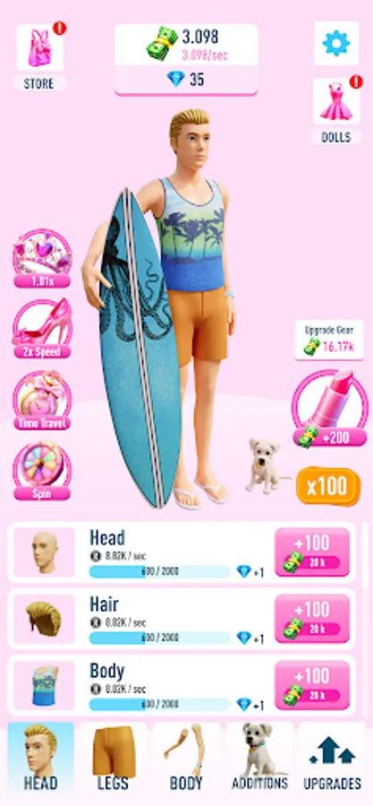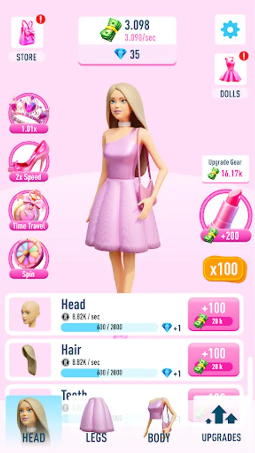 Idle Dolls isn't just a game; it's an interactive masterpiece. The mesmerizing graphics and enchanting soundtrack transport you into a realm where a girl’s imagination knows no bounds. Feel the satisfaction of watching your dolls and their Kens come to life, their hair and nails features reflecting your creative decisions. As you progress, you'll uncover rare materials and unlock new customization options in your salon, making every click and tap more rewarding.