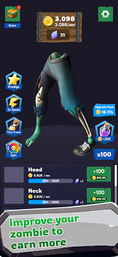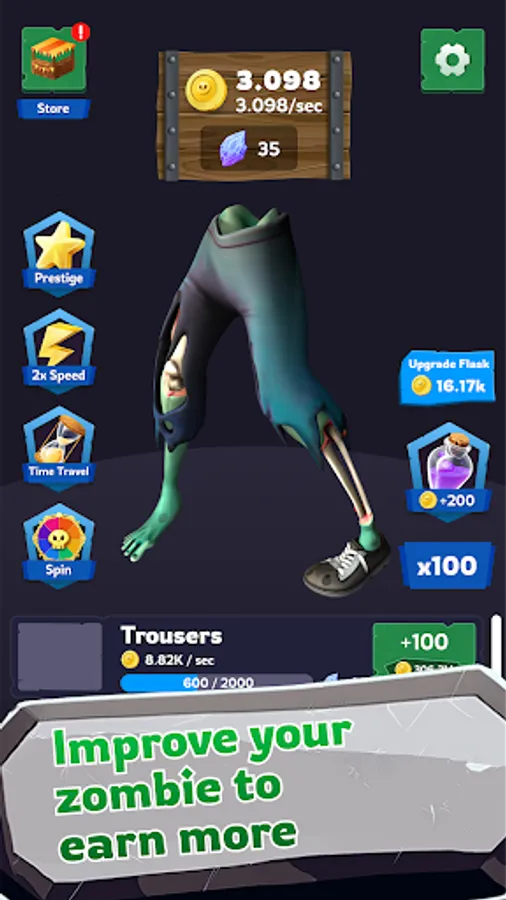 With each click, you can earn valuable resources to help you build and expand your zombie empire. You can use these resources to customize your idle zombies' appearance, upgrade it’s abilities, and unlock new body parts. Hunt for an adventure and catch a new game vibe!