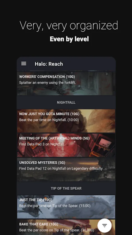 With nearly 1,000 unique achievements spanning across 20 years of gaming greatness, Noble offers you an easy way to view the achievements you're looking for. Whether you want to see all Achievements for the next level, or if you're only concerned with finding those few missing collectibles - you can easily filter and sort for your play style.