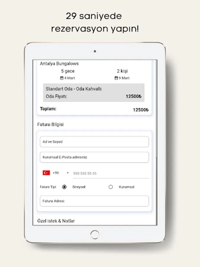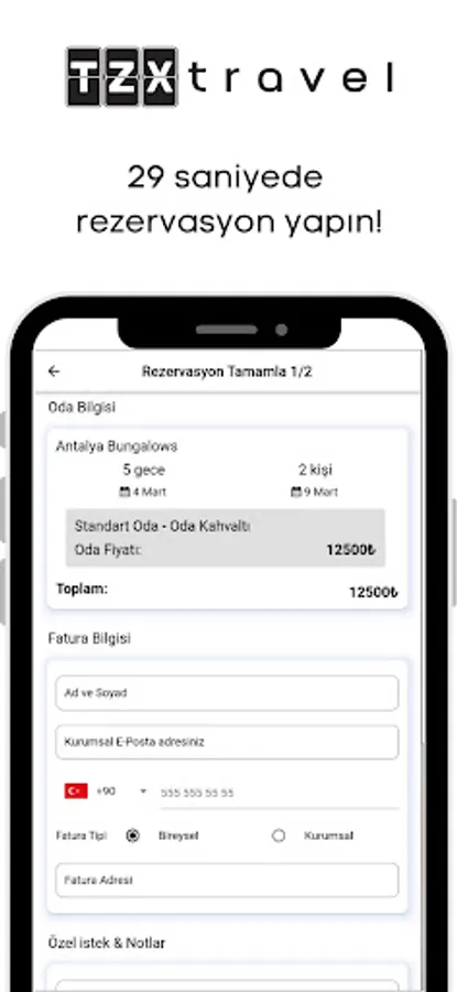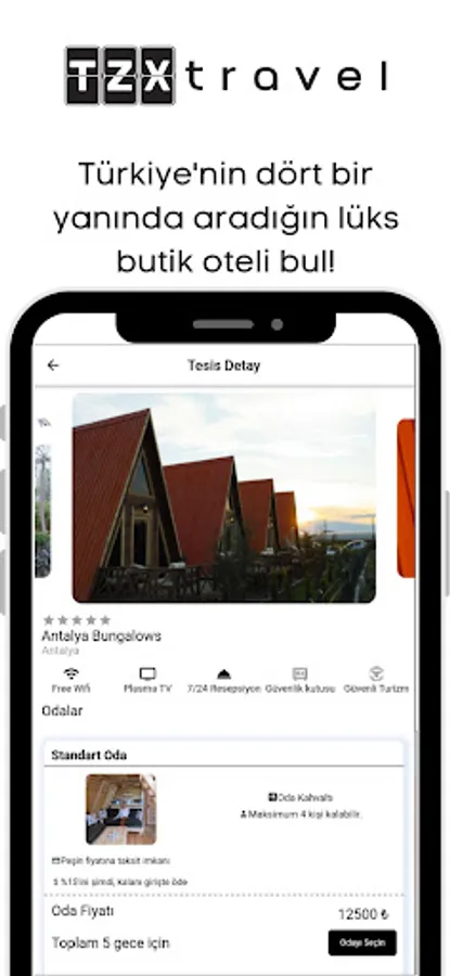 The advantage of paying at the facility with the possibility of free reservation… With the mobile application of tzxtravel.com, you can make your reservation for the facility you have chosen instantly, and make your payment at the facility at the beginning of your stay.