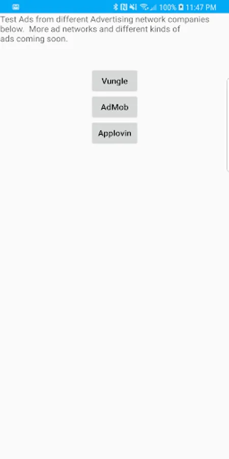 Watch and compare ads from different Ad networks. Excellent for comparing performance of ads on different devices and ad networks. Callback logs from the different ad networks are shown as well.
