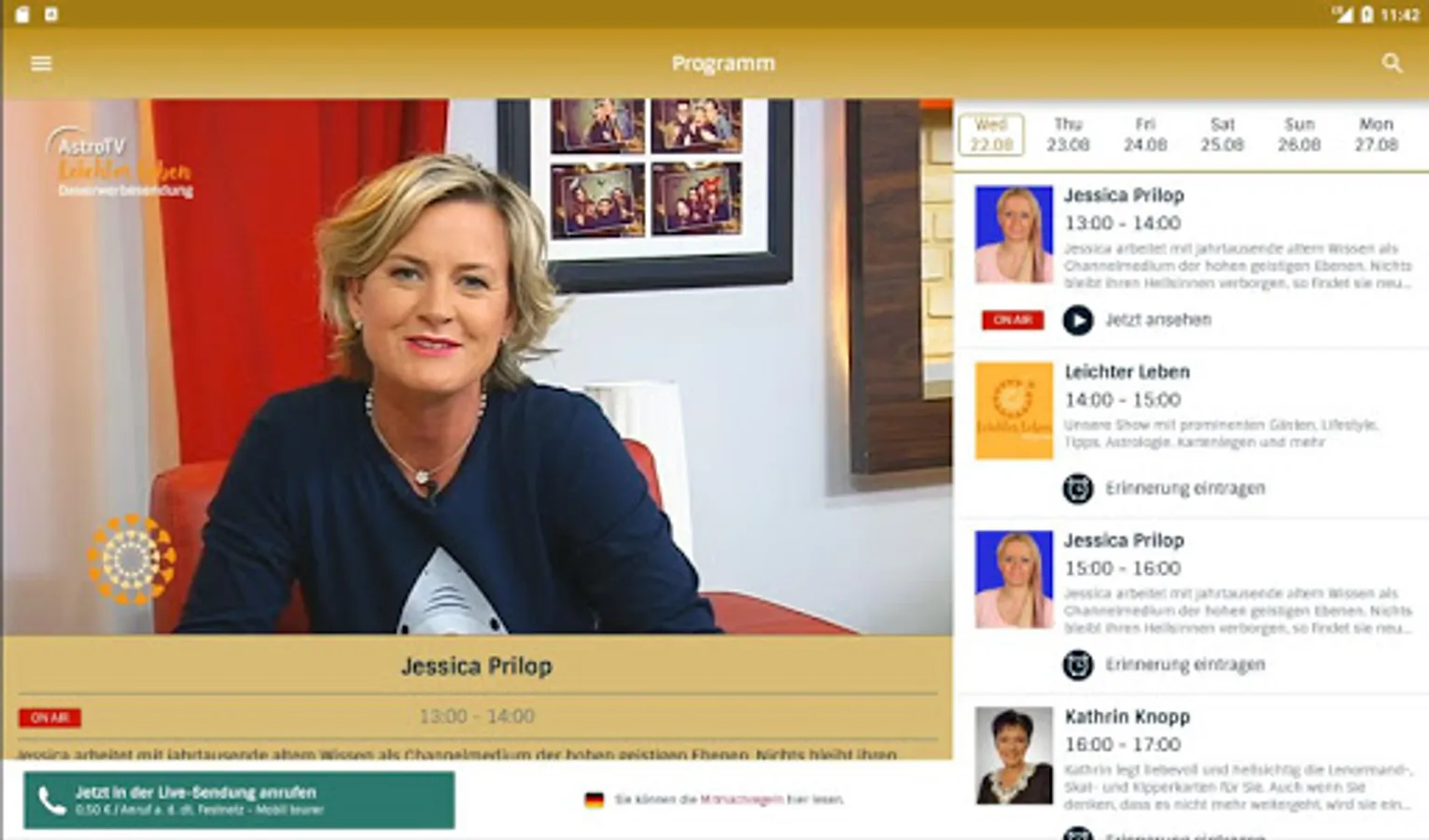 Never miss your favorite advisor again! With the AstroTV app, you can now watch our TV program live on your smartphone in HD quality around the clock.
