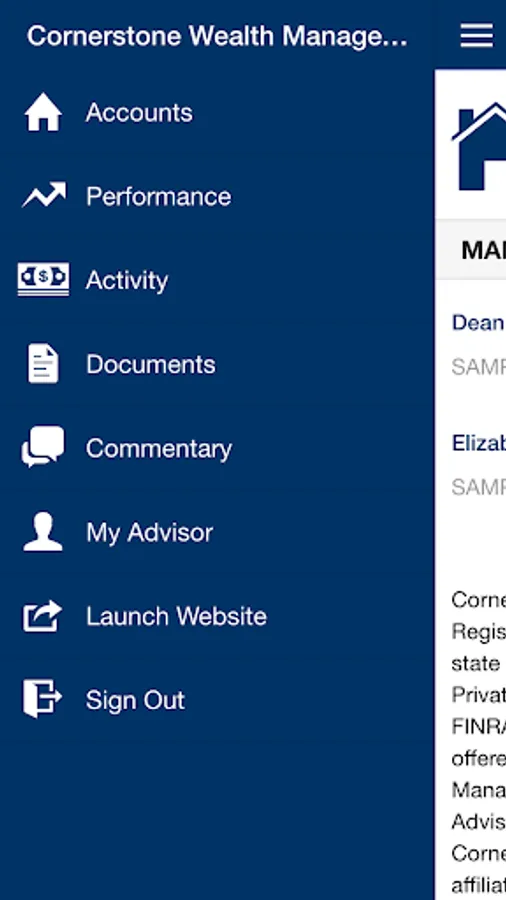 This Mobile App allows you to view your account information with Cornerstone Wealth Management. You will have the ability to review your account balances, performance, positions and asset allocation.