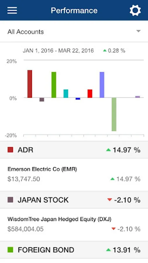 The Navigoe Mobile App allows you to view current account information including portfolio holdings and perfomance reports, account balances, as well as view uploaded documents.