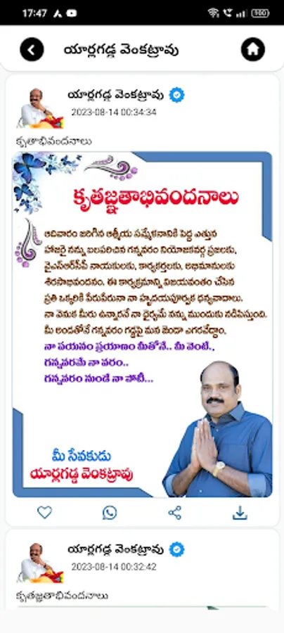 Yarlagadda Venkata Rao's dedication to the welfare of the community is evident through his active participation in various developmental initiatives. He understands the pulse of the people in his constituency and has consistently worked towards improving their quality of life. With a deep-rooted connection to the grassroots, he is well-aware of the challenges faced by his constituents, and he strives to find effective solutions to address these challenges.